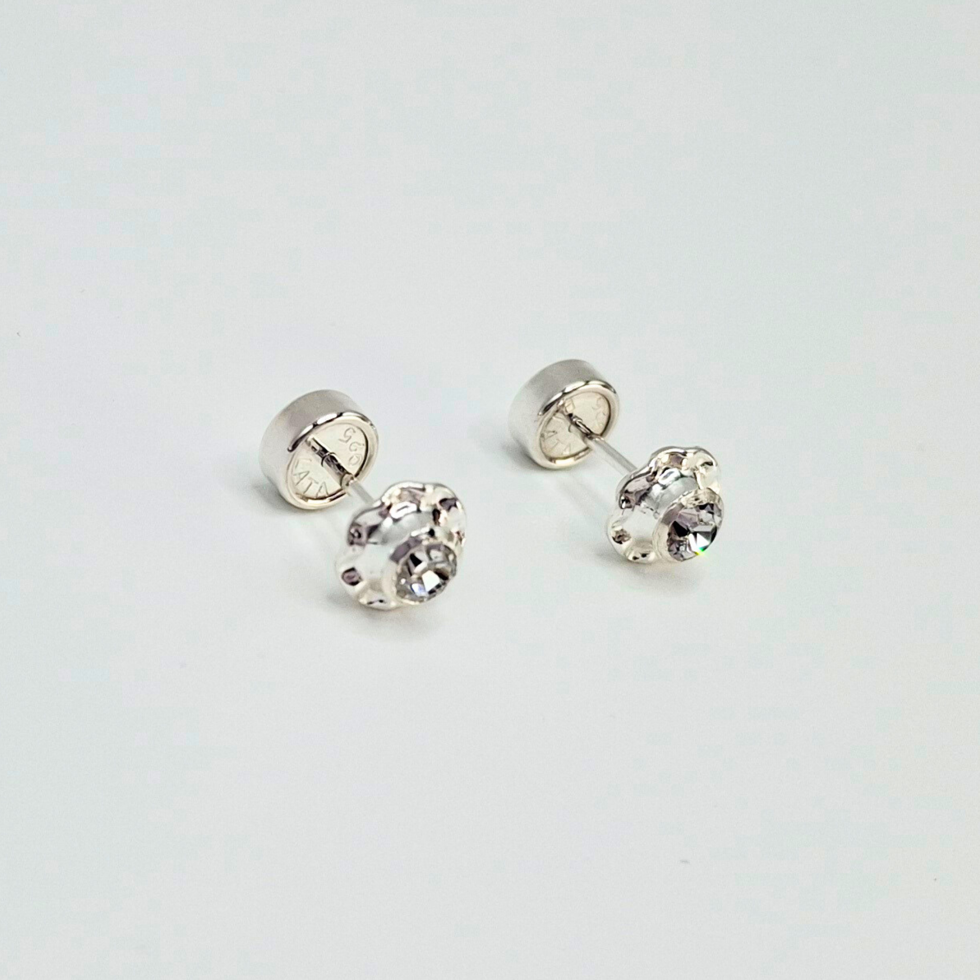 Aros abridores con un delicado diseño de flor, elaborados en plata de alta calidad y realzados con una piedra de circón brillante en el centro.