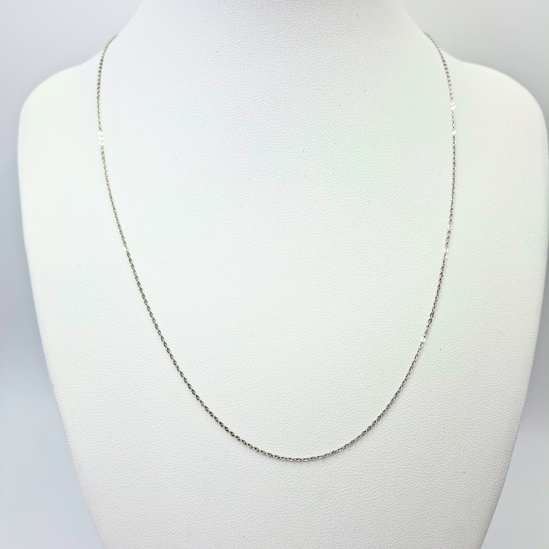 Cadena forzatina en oro blanco 18k, con largo ajustable entre 45 y 40 cm. Su diseño clásico y luminoso es ideal para usar sola o con colgantes. Terminación de alta calidad, hipoalergénica y cómoda para uso diario.