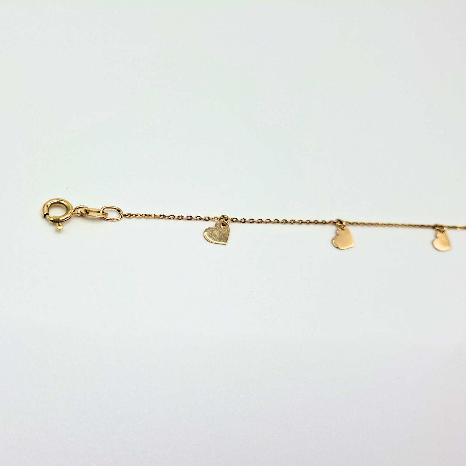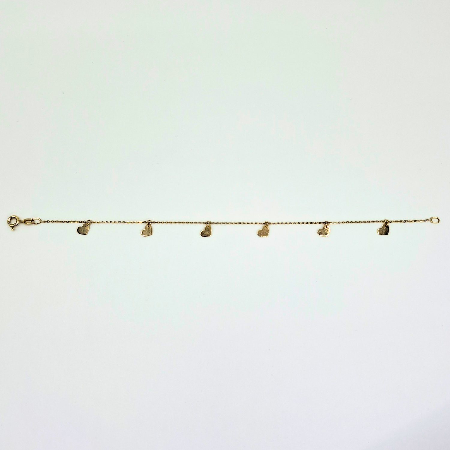 Pulsera corazones en oro italiano de 18k, con cadena forzatina. Contiene dijes de corazones en oro de 18k.